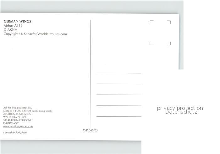 Flugzeuge Zivil German Wings Airbus A319 D-AKNH postalisch nicht gelaufen Erhaltung siehe scans