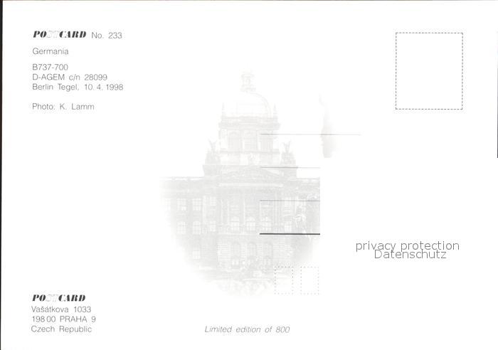 Flugzeuge Zivil Germania B737-700 D-AGEM c/n 28099 postalisch nicht gelaufen Erhaltung siehe scans