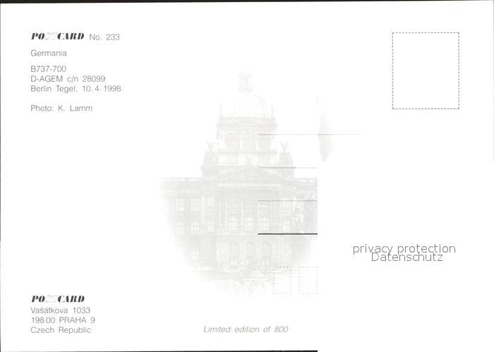 Flugzeuge Zivil Germania B737-700 D-AGEM c/n 28099 postalisch nicht gelaufen Erhaltung siehe scans
