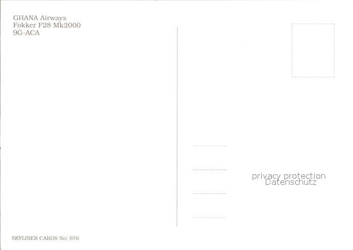Flugzeuge Zivil Ghana Airways Fokker F28 Mk2000 9G-ACA postalisch nicht gelaufen Erhaltung siehe scans