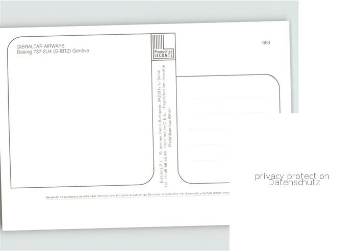 Flugzeuge Zivil Gibraltar Airways Boeing 737-2U4 G-IBTZ postalisch nicht gelaufen Erhaltung siehe scans