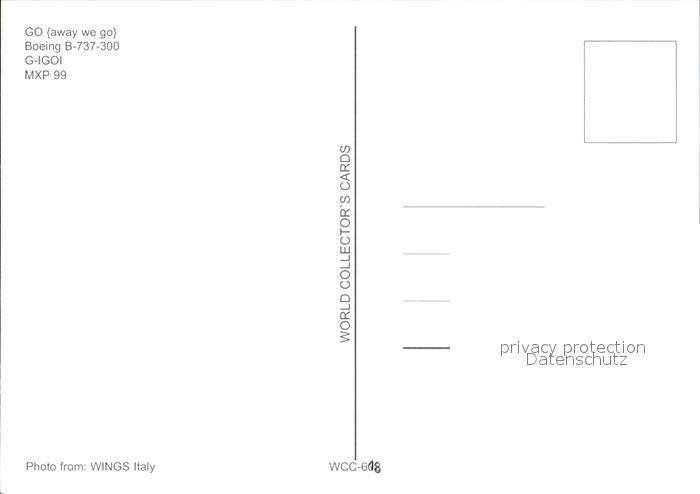 Flugzeuge Zivil GO (away we go) Boeing B-737-300G-IGOI postalisch nicht gelaufen Erhaltung siehe scans