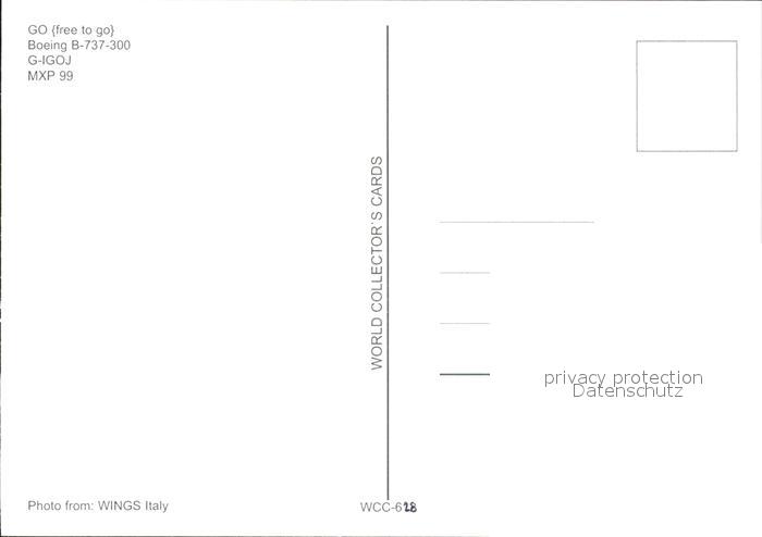 Flugzeuge Zivil GO Free to Go Boeing 737-300 G-IGOJ postalisch nicht gelaufen Erhaltung siehe scans