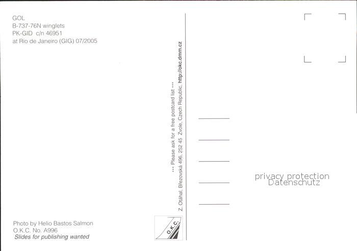 Flugzeuge Zivil GOL B-737-76N Winglets PK-GID c/n 46951 postalisch nicht gelaufen Erhaltung siehe scans