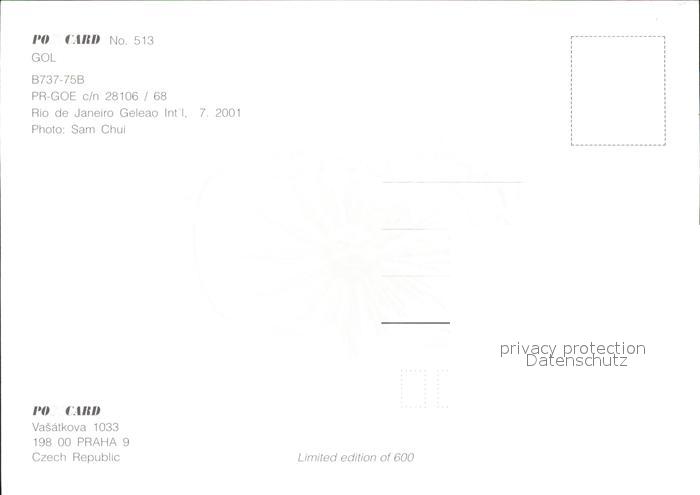 Flugzeuge Zivil GOL B737-75B PR-GOE c/n 28106/68 postalisch nicht gelaufen Erhaltung siehe scans