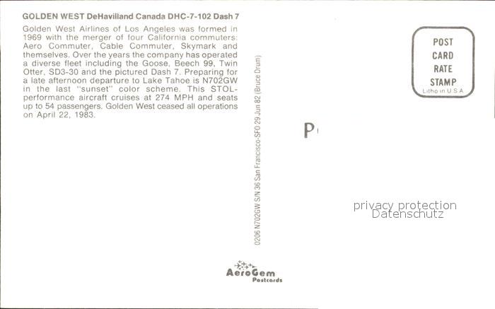 Flugzeuge Zivil Golden West DeHavilland Canada DHC-7-102 Dash 7 N702GW s/n 36 postalisch nicht gelaufen