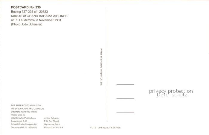 Flugzeuge Zivil Grand Bahama Airlines Boeing 727-225 c/n 20623 N8861E postalisch nicht gelaufen Erhaltung siehe scans