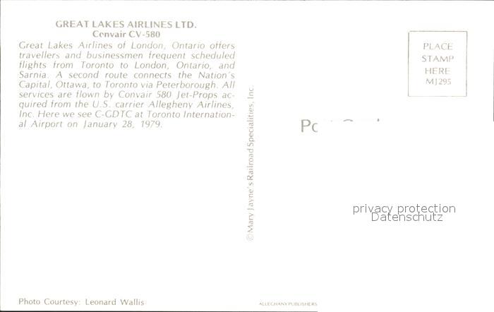 Flugzeuge Zivil Great Lakes Airlines Convair CV-580 postalisch nicht gelaufen Erhaltung siehe scans