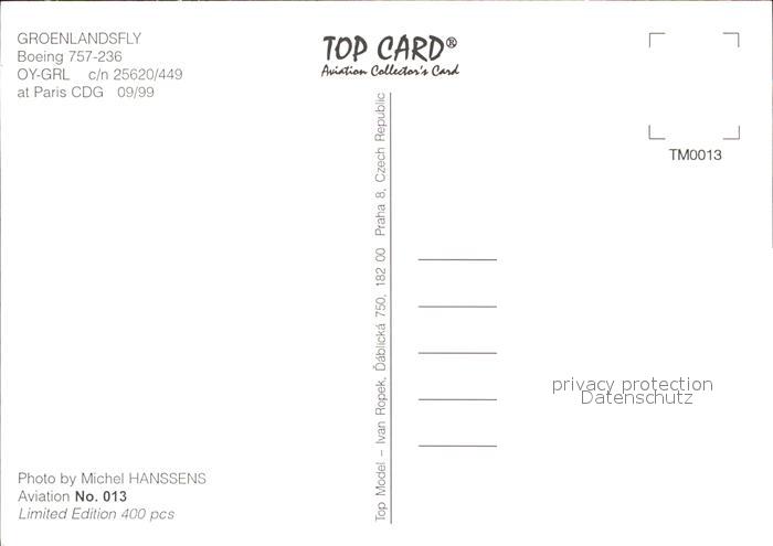 Flugzeuge Zivil GReelandair Boeing 757-236 OY-GRL c/n 25620/449 postalisch nicht gelaufen Erhaltung siehe scans