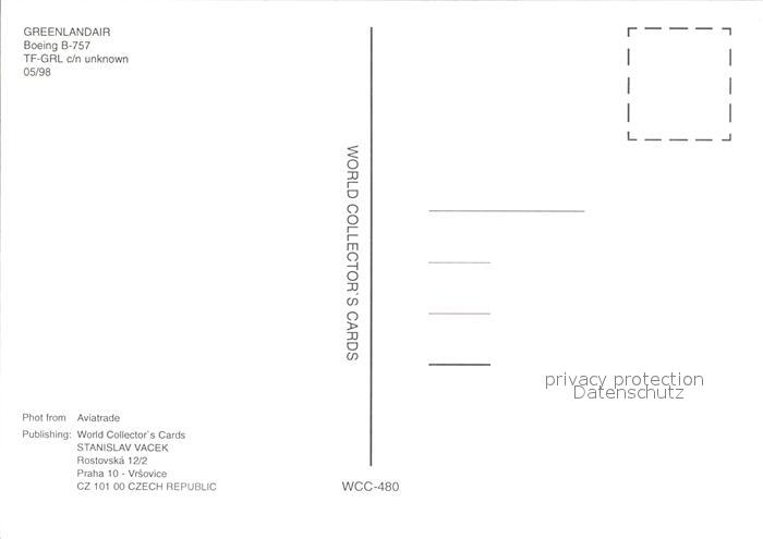 Flugzeuge Zivil Greenlandair Boeing 757 TF-GRL postalisch nicht gelaufen Erhaltung siehe scans
