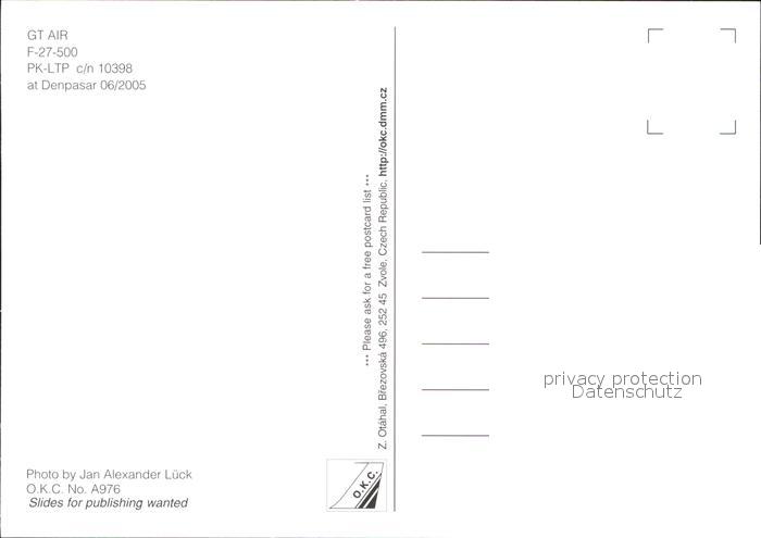 Flugzeuge Zivil GT Air F-27-500 PK-LTP c/n 10398 postalisch nicht gelaufen Erhaltung siehe scans
