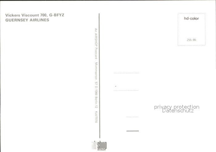Flugzeuge Zivil Guernsey Airlines Vickers Viscount 700 G-BFYZ postalisch nicht gelaufen Erhaltung siehe scans