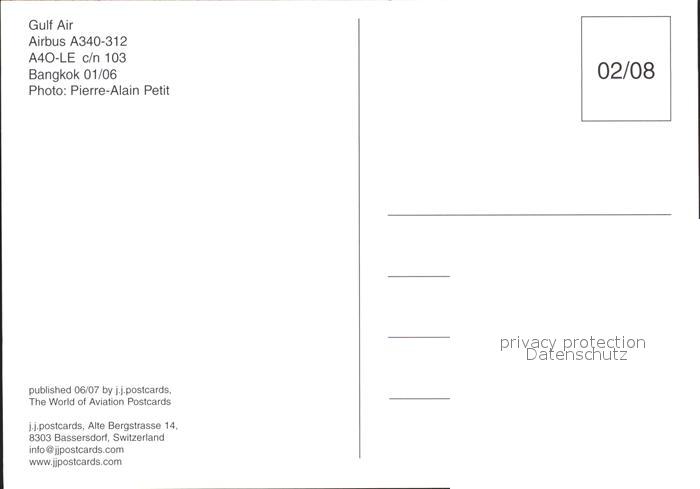 Flugzeuge Zivil Gulf Air Airbus 340-312 A4O-LE c/n 103 postalisch nicht gelaufen Erhaltung siehe scans