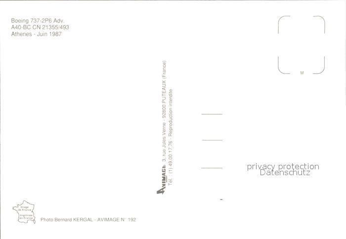 Flugzeuge Zivil Gulf Air Boeing 737-2P6 Advanced A40-BC CN 21355-493 postalisch nicht gelaufen Erhaltung siehe scans