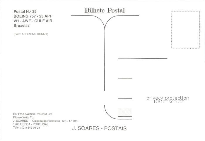 Flugzeuge Zivil Gulf Air Boeing 757-23 APF VH-AWE postalisch nicht gelaufen Erhaltung siehe scans