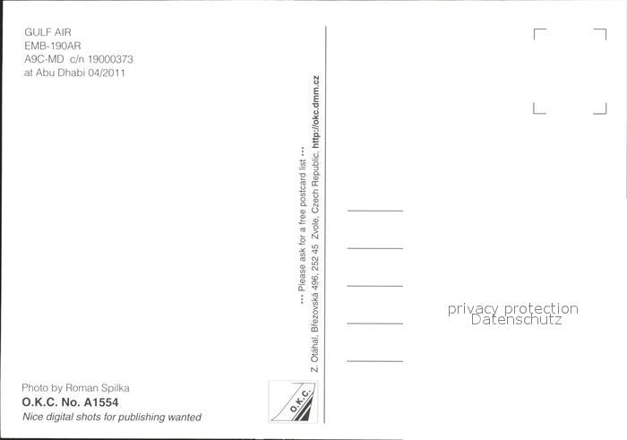 Flugzeuge Zivil Gulf Air EMB-190AR A9C-MD c/n 19000373 postalisch nicht gelaufen Erhaltung siehe scans