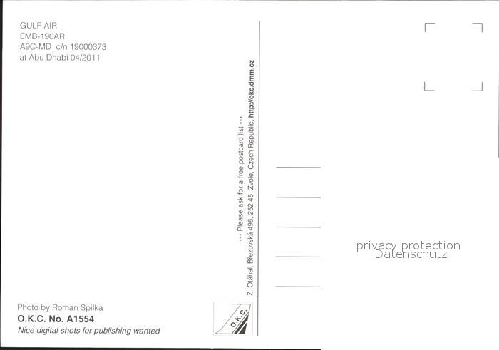 Flugzeuge Zivil Gulf Air EMB-190AR A9C-MD c/n 19000373 postalisch nicht gelaufen Erhaltung siehe scans