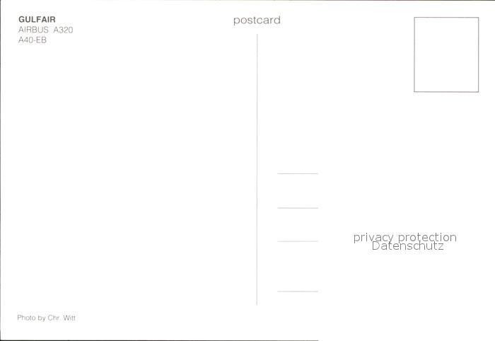 Flugzeuge Zivil Gulfair Airbus A320 A40- EB postalisch nicht gelaufen Erhaltung siehe scans