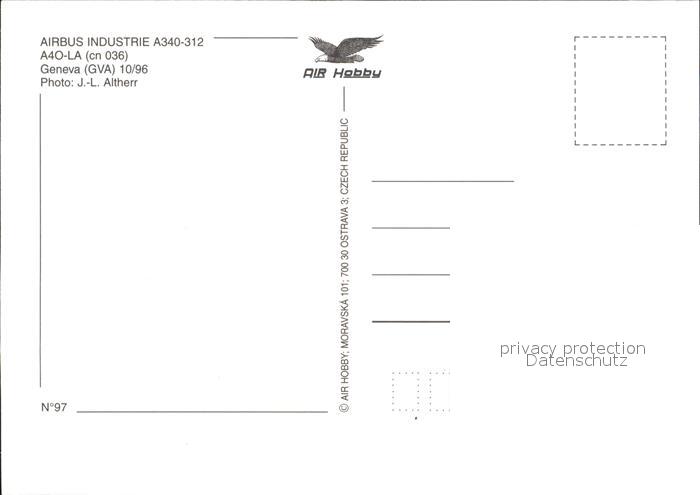Flugzeuge zivil Gulfair Airbus Industries A340-312 A4O-LA (cn 036) Geneva postalisch nicht gelaufen Erhaltung siehe scans