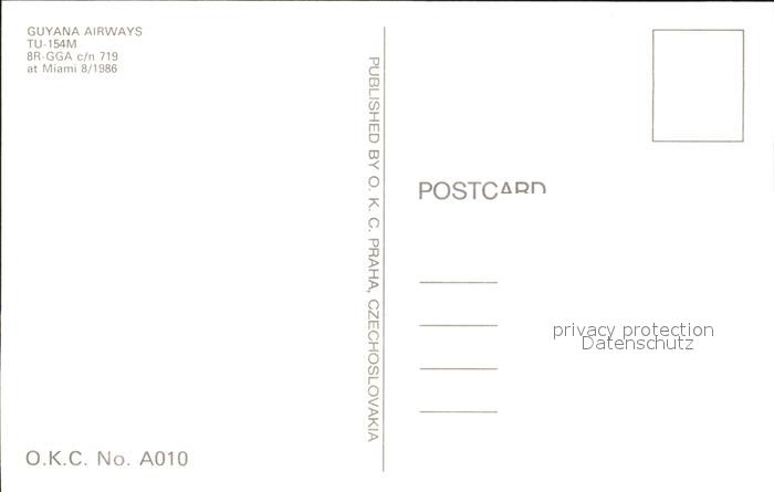 Flugzeuge Zivil Guyana Airways TU-154M 8R-GGA c/n 719 postalisch nicht gelaufen Erhaltung siehe scans