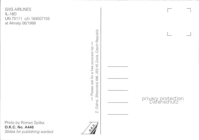 Flugzeuge Zivil GVG Airlines IL-18D UN 75111 c/n 184007105 postalisch nicht gelaufen Erhaltung siehe scans