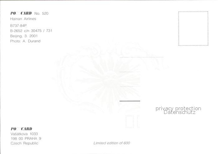 Flugzeuge Zivil Hainan Airlines B737-84P B-2652 c/n 30475/731 postalisch nicht gelaufen Erhaltung siehe scans