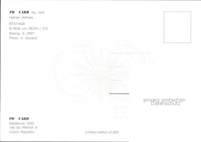 Flugzeuge Zivil Hainan Airlines B737-8Q8 B-2638 c/n 28220/212 postalisch nicht gelaufen Erhaltung siehe scans
