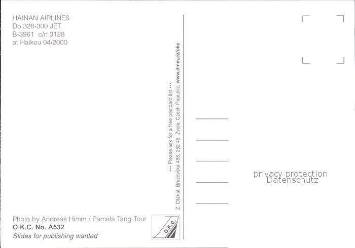 Flugzeuge Zivil Hainan Airlines Do 328-300 Jet B-3961 c/n 3128 postalisch nicht gelaufen Erhaltung siehe scans