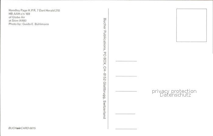 Flugzeuge Zivil Handley Page H.P.R. Dart Herald 210 Globe Air HB-AAH c/n 169 postalisch nicht gelaufen Erhaltung siehe scans