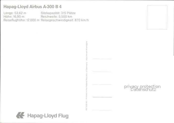 Flugzeuge Zivil Hapag-Lloyd Airbus A-300 B4 postalisch nicht gelaufen Erhaltung siehe scans