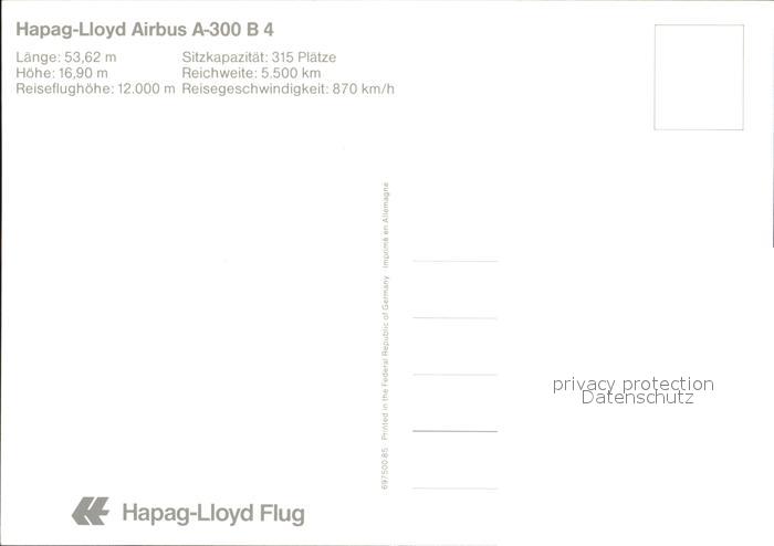 Flugzeuge Zivil Hapag-Lloyd Airbus A-300 B4 postalisch nicht gelaufen Erhaltung siehe scans
