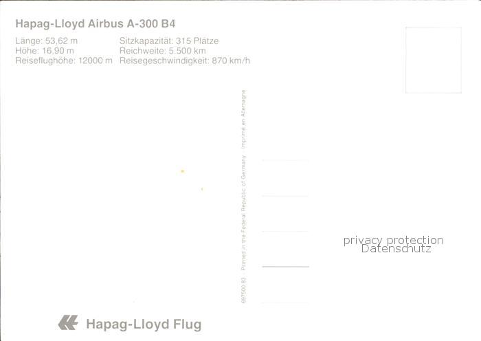 Flugzeuge Zivil Hapag-Lloyd Airbus A-300 B4 postalisch nicht gelaufen Erhaltung siehe scans