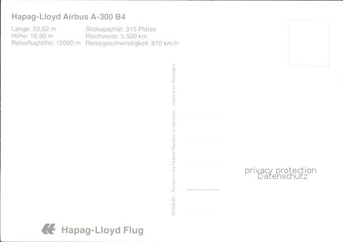 Flugzeuge Zivil Hapag-Lloyd Airbus A-300 B4 postalisch nicht gelaufen Erhaltung siehe scans