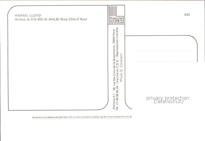 Flugzeuge Zivil Hapag Lloyd Airbus A-310-300 D-AHLB postalisch nicht gelaufen Erhaltung siehe scans