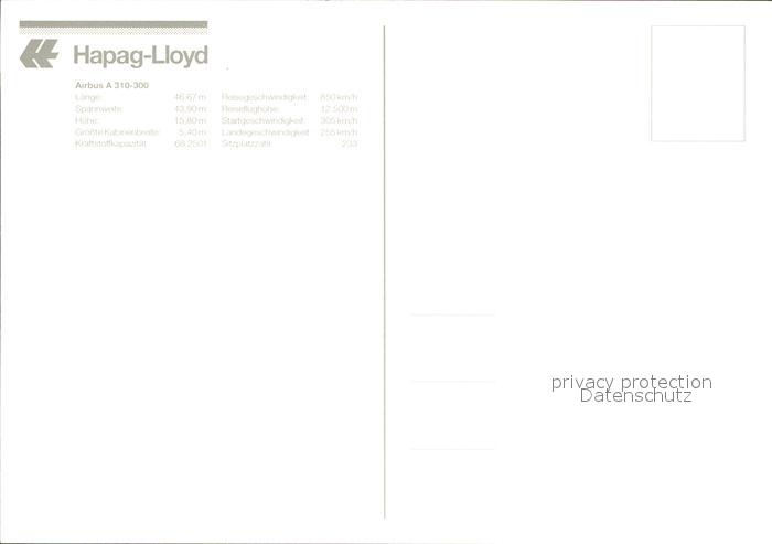 Flugzeuge Zivil Hapag-Lloyd Airbus A310-300 postalisch nicht gelaufen