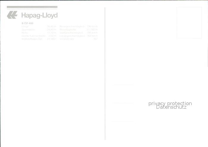 Flugzeuge Zivil Hapag-Lloyd B737-400 postalisch nicht gelaufen Erhaltung siehe scans