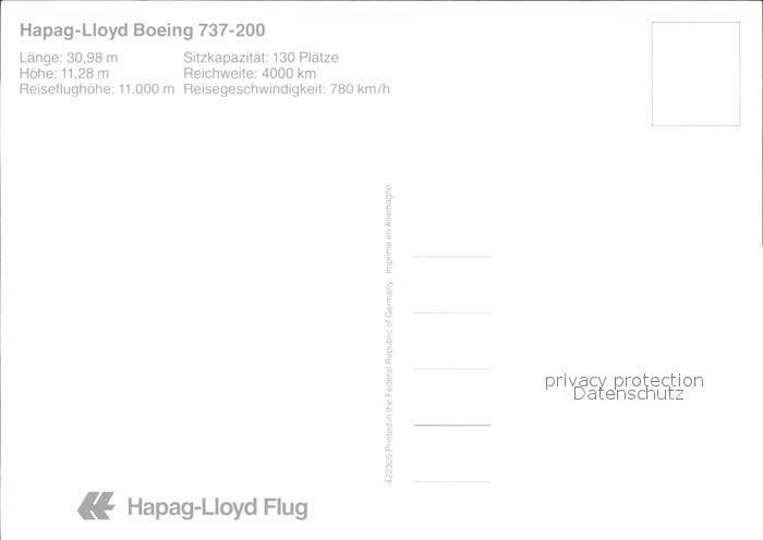 Flugzeuge Zivil Hapag-Lloyd Boeing 737-200 postalisch nicht gelaufen Erhaltung siehe scans