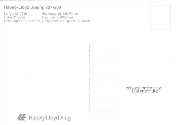 Flugzeuge Zivil Hapag-Lloyd Boeing 737-200 D-AHLD postalisch nicht gelaufen Erhaltung siehe scans