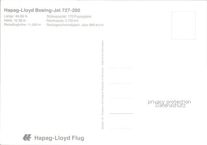 Flugzeuge Zivil Hapag-Lloyd Boeing-Jet 727-200 postalisch nicht gelaufen Erhaltung siehe scans