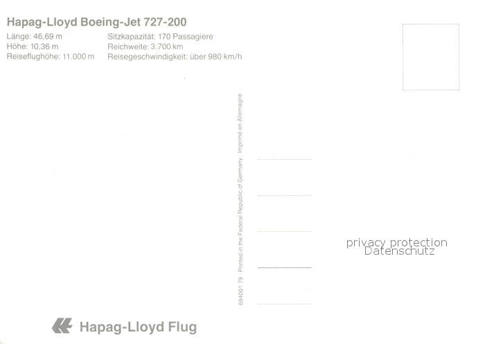 72914247 Flugzeuge Zivil Hapag-Lloyd Boeing-Jet 727-200 KatCode 22120000001300