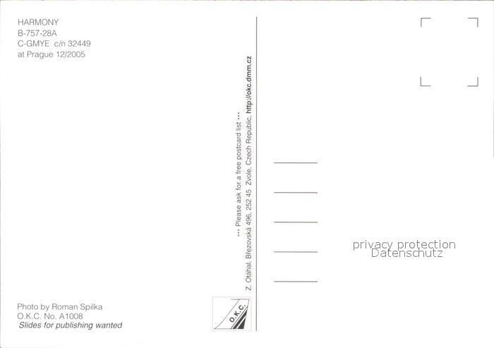 Flugzeuge Zivil Harmony B-757-28A C-GMYE c/n 32449 postalisch nicht gelaufen Erhaltung siehe scans