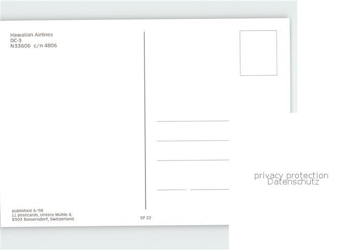 Flugzeuge Zivil Hawaiian Airlines DC-3 N33606 c/n 4806 postalisch nicht gelaufen Erhaltung siehe scans