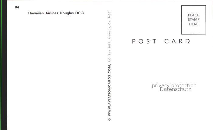 Flugzeuge Zivil Hawaiian Airlines Douglas DC-3 N82044 postalisch nicht gelaufen Erhaltung siehe scans