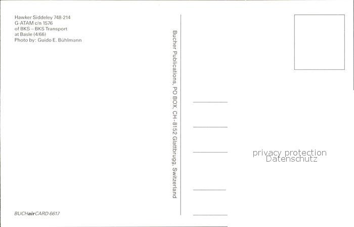Flugzeuge Zivil Hawker Siddeley 748-214 G-ATAM c/n 1576 BKS Transport postalisch nicht gelaufen Erhaltung siehe scans