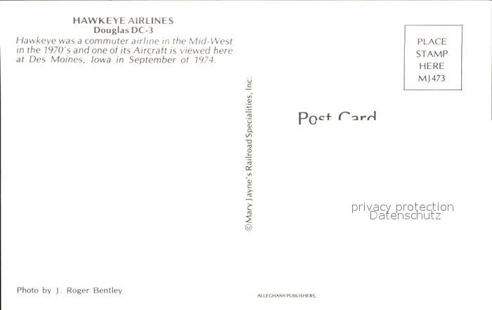 Flugzeuge Zivil Hawkeye Airlines Douglas DC-3 N101KC postalisch nicht gelaufen Erhaltung siehe scans