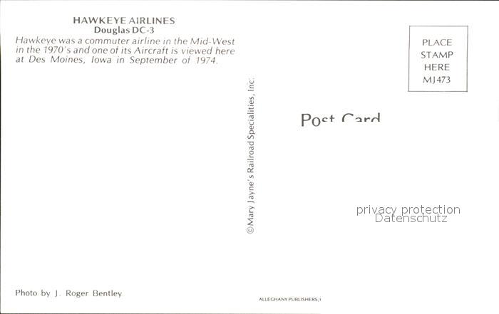 Flugzeuge Zivil Hawkeye Airlines Douglas DC-3 N101KC postalisch nicht gelaufen Erhaltung siehe scans