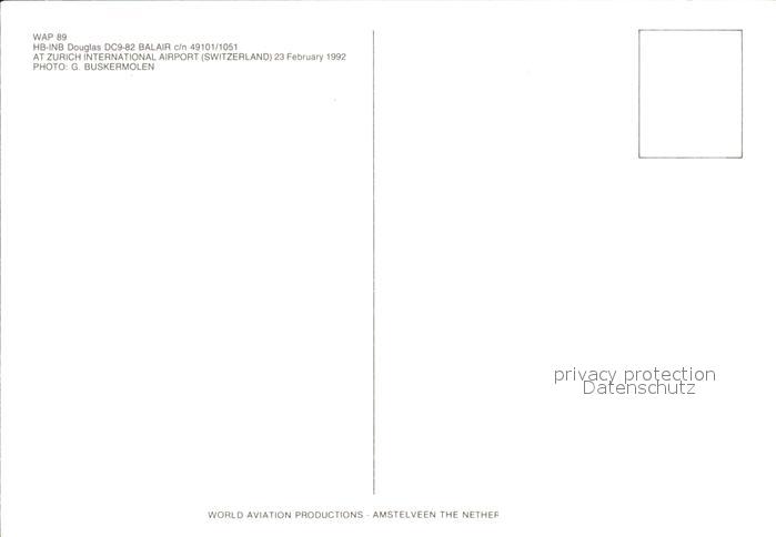 Flugzeuge Zivil HB-INB Douglas DC9-82 Balair c/n 49101/1051 postalisch nicht gelaufen Erhaltung siehe scans