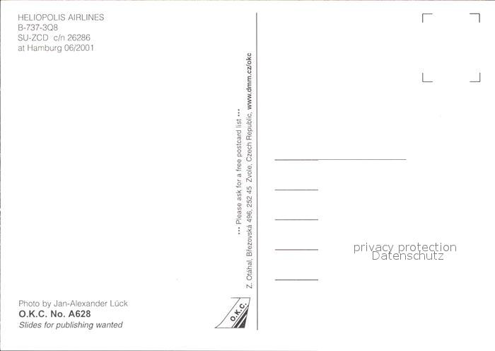 Flugzeuge Zivil Helipolis Airlines B-737-3Q8 SU-ZCD c/n 26286 postalisch nicht gelaufen Erhaltung siehe scans
