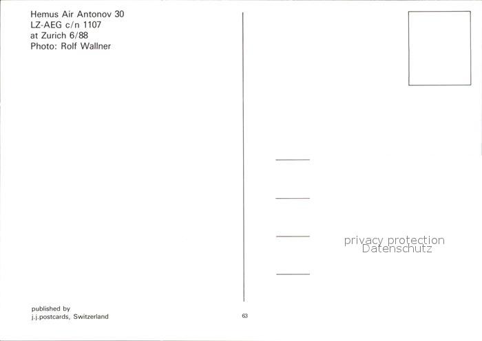 Flugzeuge Zivil Hemus Air Antonov 30 LZ-AEG c/n 1107 postalisch nicht gelaufen Erhaltung siehe scans