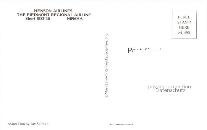 71809127 Flugzeuge Zivil Henson Airlines The Piedmont regional Airline Short SD3-30 N896HA KatCode 22120000001300